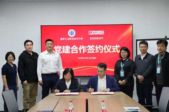 10月14日上午,南京工业职业技术大学机械工程学院与菲尼克斯电气中国公司举行校企党建共建签约仪式。双方以党建共建为纽带,聚焦职业本科人才培养与产业发展需求,开启互融共进新征程,南京工业职业技术大学机械工程学院党委书记刘英慧、副院长吴修娟,菲尼克斯电气中国公司党支部书记易书波、数字工业解决方案业务总监张冠伟等代表出席了签约仪式。