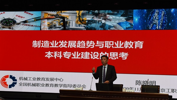机械工业教育发展中心主任、全国机械职业教育教学指导委员会主任陈晓明、北京精雕科技集团有限公司总裁蔚飞分别讲话、党委书记吴学敏致欢迎词,启动仪式由谢永华校长主持。吴学敏书记和蔚飞总裁为北京精雕学院院长颁发了聘任证书。在大学创新发展中心,我校师生聆听了陈晓明主任题为《制造业发展趋势与职业教育本科建设的思考》专家报告,深受启发。