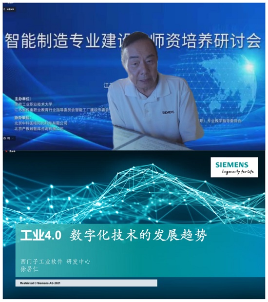 西门子工业软件(上海)研发中心总经理徐居仁先生出席了研讨会并以“工业4.0 数字化技术的发展趋势”为题深度解析了西门子智能制造岗位群和产教融合的建设情况。徐居仁表示,希望通过西门子智能制造产教融合项目平台,与更多高校建立良好合作关系,在人才培养、新技术预研等方面取得更大的进步。