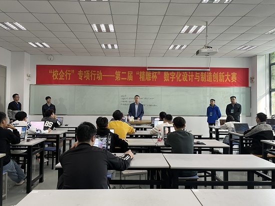 10月31日上午,我校第二届“精雕杯”数字化设计与制造创新大赛决赛在南工-北京精雕学院举行。本次比赛由南京工业职业技术大学机械工程学院、创新创业学院和北京精雕科技集团(南京分公司)联合举办。创新创业学院副院长黄继平作为专家到现场指导工作,北京精雕科技集团(南京分公司)总经理梁彦松任裁判长。
